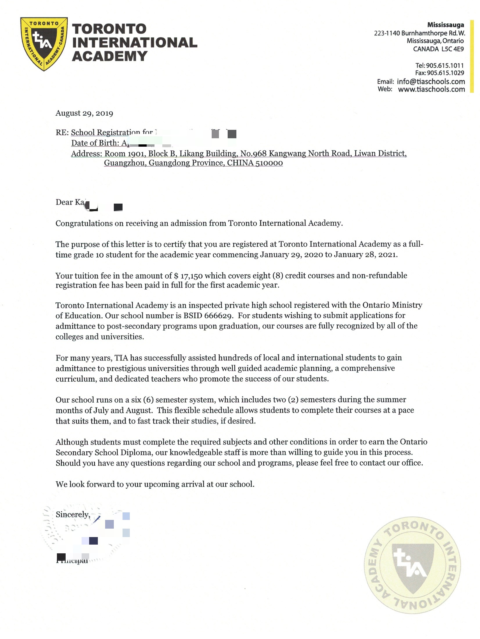 请提供英文版行程单,需与录取信/邀请信的行程一致。