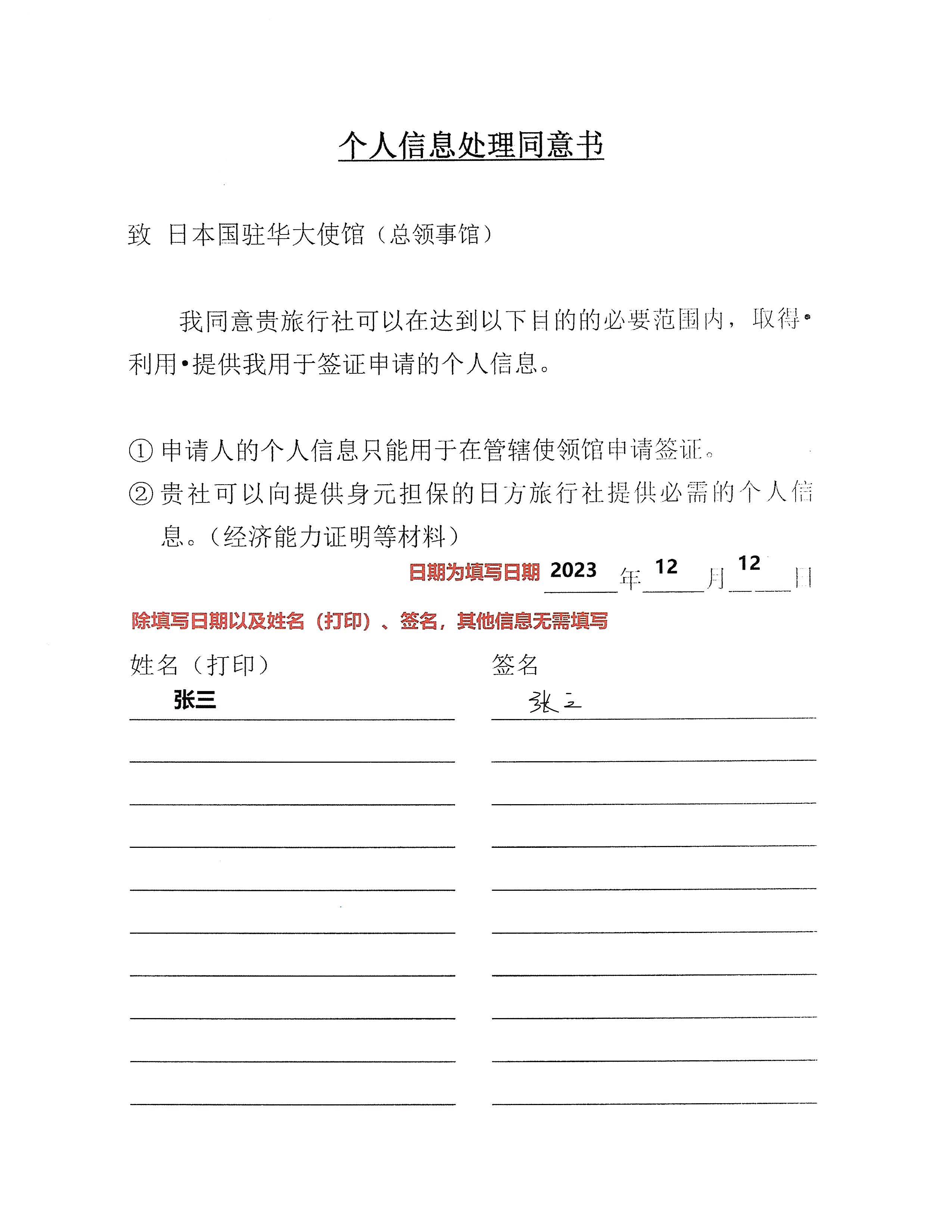 1.申请表必须正反面打印在同一张纸上,电脑编辑,中文完整填写,本人签字,字迹清晰、不得涂改 2.所有地址须具体至门牌号 (1)家庭地址须与单位地址同属一个城市(或地区),如不一致,可能需补充交通证明 (2)单位地址须为受理领区范围内 3.申请表“在日拟入住地址”栏请勿填写 4.申请表背面“担保人信息”栏请勿填写 5.入境口岸、预计往返时间必须填写 6.关于入境口岸:如填写冲绳,会绑定行程,真实行程中必须从冲绳入境;其他口岸无此限制,请务必确认填写 7.上次赴日日期及停留时间必须填写正确 8.公司电话必须填写(可写手机号) 9.工作单位处如遇到身份为在职学生/自由职业/退休/学龄前儿童/因相应填写在校学生及地址/自由职业4字/已退休3字/学龄前儿童5字 注:打印签字后,提供原件。以上内容必须如实填写,如发现填写不规范或信息无效,需重新提交签字表格。我司提供范例供参考查看样例