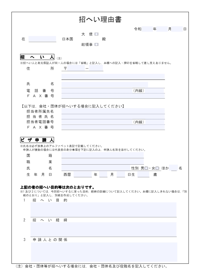 1.外国人做担保人时,原则上需具有下述任何一种在留资格并现居住在日本(在留期间需为「3年」以上): (1)「外交」、「公用」、「永住者」、「特别永住者」(被抚养者除外) (2)「教授」、「艺术」、「宗教」、「报道」、「高度专门职」、「经营・管理」、「法律・会计业务」、「医疗」、「研究」、「教育」、「技术・人文知识・国际业务」、「企业内转勤」、「技能」、「日本人配偶者等」、「永住者配偶等」、「定住者」、「特定活动(特定研究活动・特定情报处理活动)」、「特定活动(高度学术研究活动、高度专门・技术活动或高度经营・管理活动)」 注:持「日本人配偶者等」、「永住者配偶者等」、「定住者」在留资格的被抚养者除外。 2.担保人(按邀请人身份) (1)若邀请人为持留学签证的在日留学生,担保人通常是邀请人所在学校的教授 (2)若邀请人为持工作类签证的在日工作人员,担保人通常是邀请人的日本籍上司 3.请确保所提供的信息真实、准确。签证办理期间,领馆可能会致电申请人或其所在单位进行电话调查,请保持电话畅通,并如实回答相关问题,否则可能导致拒签。如在职人员因个人原因无法提供在职证明,请务必提前与签证专家沟通说明;如隐瞒在职身份并以自由职业方式申请,存在拒签风险,责任由申请人自行承担。 4.鉴于日本领馆对签证及部分重点地区(如非法滞留高发地区)的申请人审核较为严格,我司将根据申请人所提交材料的具体情况,严格把关,并可能视情况要求补充辅助证明文件(如房产、车辆、社保、学历、真实机票、酒店订单等),或退回申请材料。 5.材料经我司审核递交后,领馆仍可能要求补充资料,请申请人配合。根据领馆相关制度规定,申请人未经我司同意,不得擅自联系日本领事馆。若违反此规定,由此造成的一切后果(如拒签、领馆终止申请等),均由申请人自行承担,且已缴费用不予退还。 6.若因终止/拒签导致签证未能获批,领馆将不收取签证费,但我司会收取相应的操作服务费(具体金额可咨询签证专家),且该服务费不予退还。